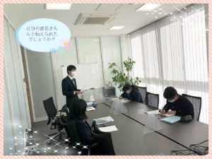 さて、今日は1日、内定者同士の交流、学生から社会人への気持ちの切り替えについて学びました。