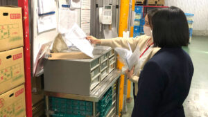 収穫体験をしてもらった後は倉敷市にある倉敷青果敷地内の青ネギ集出荷貯蔵施設へ移動し、自分たちが収穫した青ネギの出荷準備体験となりました。